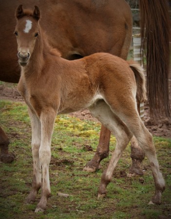 Fuchsfarbenes Stutfohlen von Molenhorn's Pasja a.d. Verb.Pr. Stute Beukenhof's Jessica.